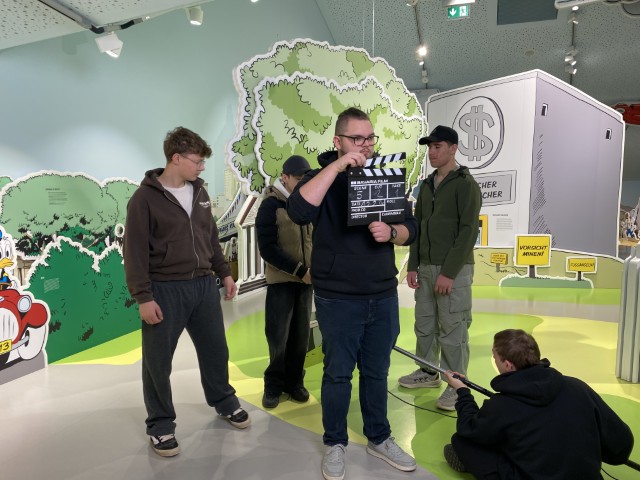 das Erika-Fuchs-Haus | Museum für Comic und Sprachkunst lädt herzlich zur Filmpremiere am 24. März 2026, um 17:30 Uhr, ein. Gezeigt wird ein Film, den die Schüler der Geschwister-Scholl-Mittelschule (Schwarzenbach a. d. Saale) in einem einwöchigen Filmworkshop im März 2026 erarbeitet haben. Unter dem Titel „Tatort Entenhausen“ entstand ein Kriminalfilm um eine Donald-Duck-Figur aus der Sammlung des Museums. In gemeinsamer Gruppenarbeit entwickelten die 15 Schüler verschiedene Ideen, für die die Museumssammlung als Inspirationsquelle diente. Daraus entwickelten die Jugendlichen ein Gesamtkonzept, woraus die Filmgeschichte entsandt. Als Dank für die kreative Arbeit erhalten alle Teilnehmende eine Jahreskarte für das Erika-Fuchs-Haus. Geleitet wurde der Workshop von Andres Müller (Medienpädagoge) und Karin Stöhr (Fotografin). Die Museumsleitung Dr. Joanna Stracowski gewährte den Schülern exklusiven Zugang zu den Depoträumen des Museums, die sie als Filmset nutzen konnten. Das Projekt wurde durch die Fördermittel des Deutschen Museumsbunds e. V. unter dem Motto „Museum macht stark“ ermöglicht.